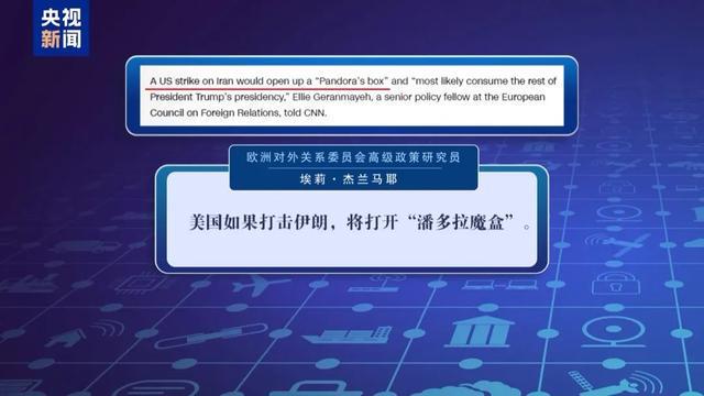 欧洲对外关系委员会高级政策研究员埃莉·杰兰马耶则称,美国如果打击伊朗,将打开“潘多拉魔盒”。