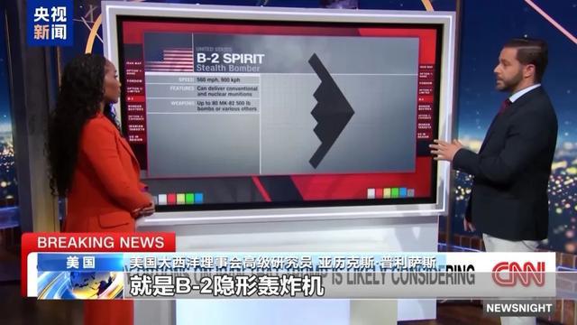 美国大西洋理事会高级研究员 亚历克斯·普利萨斯:实际上,只有一种飞机能挂载完成任务所需的3万磅重的钻地弹,就是B-2隐形轰炸机。