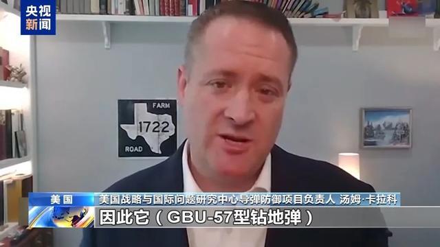 美国战略与国际问题研究中心导弹防御项目负责人 汤姆·卡拉科:金属材质会在某一时刻熔化,因此它(GBU-57型钻地弹)在能穿透多深方面确实存在局限性。这也是为什么需要接连投放多枚,楔入一枚引爆,接着再楔入一枚引爆。从某种程度来讲,你在尝试“制造”地震。