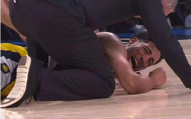首节比赛中,步行者当家球星哈利伯顿在突破中无对抗下右脚跟腱拉伤倒地,表情十分痛苦,不停摇头狂拍地板,随后退出本场比赛。