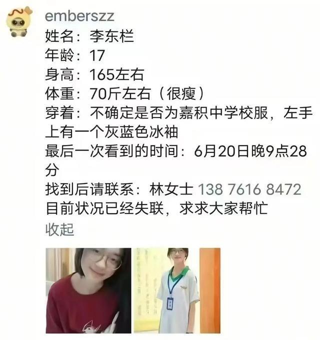随后,家长通过网络平台发布了有关小栏的基本信息,并发动更多的亲戚朋友及老师、同学帮忙寻找。