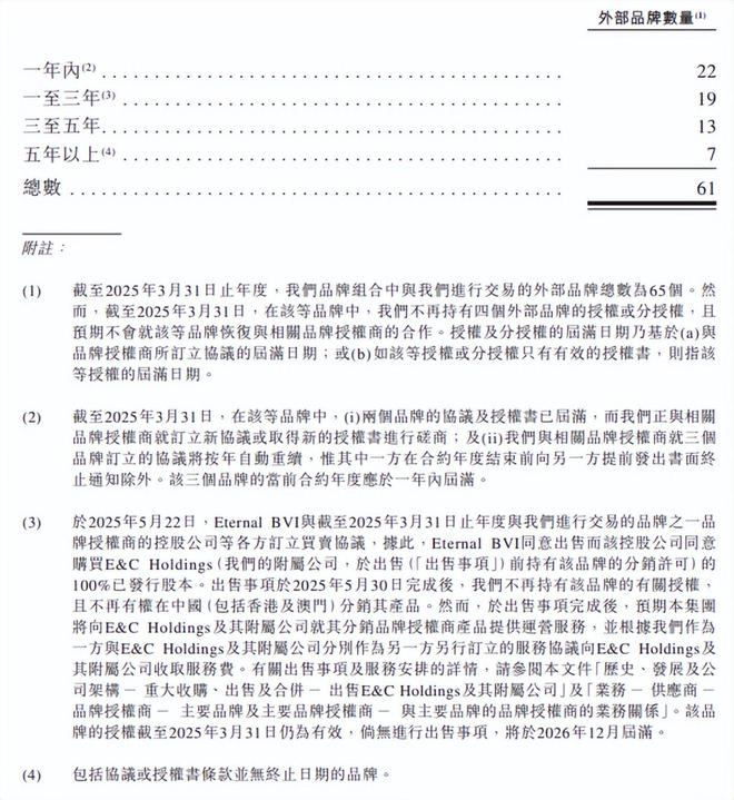 而最大的风险是,代运营是有期限的,这会为颍通控股的业务带来种种不确定性。招股书显示,2022年12月,颖通与一家主要奢侈品牌的主要品牌授权商签订的分销协议到期且并未续约,而该协议在截止2023年3月31日年度贡献人民币4.25亿元,占比收入25.5%,主要是因为该品牌授权商决定自行在中国经营该品牌。