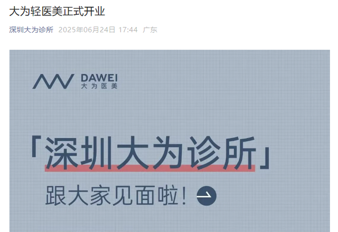 虽然该诊所成立时间早,但根据其官方公众号,该诊所于今年6月24日正式开业。