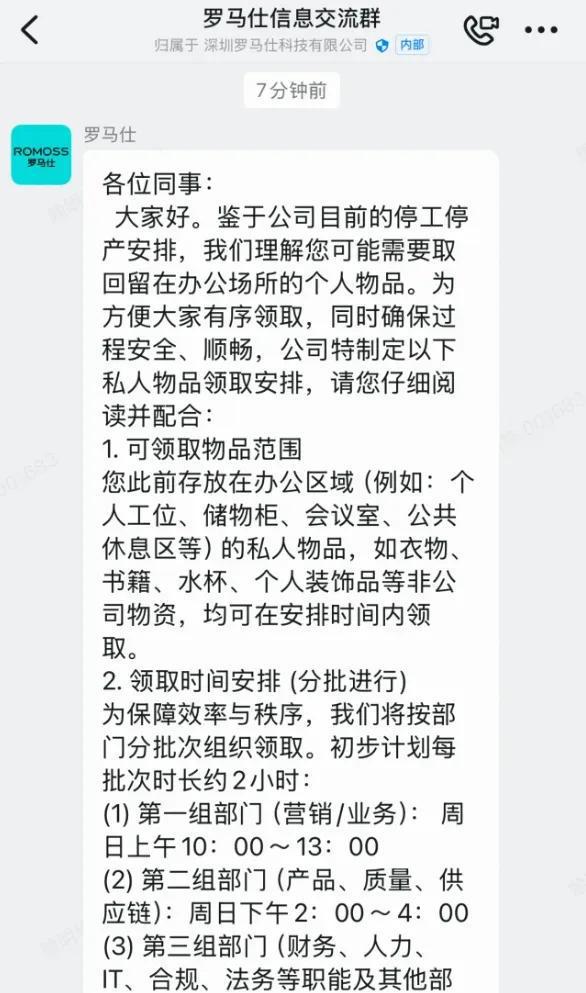 7月6日,新京报贝壳财经记者从罗马仕员工处获悉,当日凌晨一点左右,罗马仕正式发布停工停产文件:2025年7月7日起持续6... 7月6日,新京报贝壳财经记者从罗马仕员工处获悉,当日凌晨一点左右,罗马仕正式发布停工停产文件:2025年7月7日起持续6个月。除召回相关员工外,其余员工停工停产。