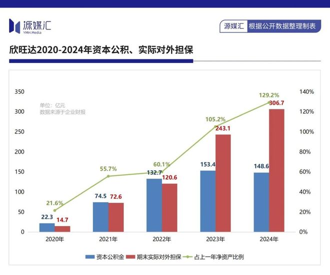 在隐性债务上,欣旺达实际对外担保,从2020年的14.7亿元飙升至2024年的306.7亿元,占上一年净资产比例从21.6%上升至129.2%;资本公积也从22.3亿元上涨至148.6亿元。