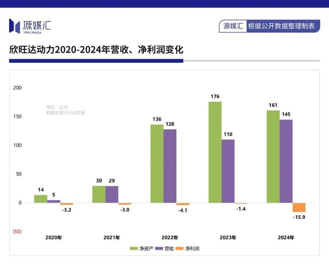欣旺达动力收入高速增长,但依然没有摆脱亏损困境,营收从2020年的4.8亿元飙升至2024年的144.8亿元,净利润亏损则从3.2亿元扩大至15.9亿元。