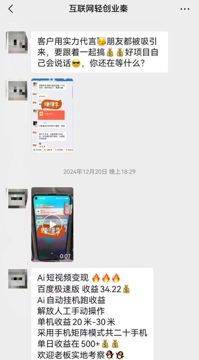 “经理告诉我,学完课程,每天至少能赚50元。他教授了一种‘矩阵运营’方法,要求我用多个账号登录快手,利用刷视频赚金币的功能,再将金币兑换成现金。”为了实践“矩阵运营”,李先生甚至自费购买了20部手机。“他们说短视频不用自己刷,会送给我一个叫‘赚小贝’的工具。只要把这个工具连到手机上,里面的AI就能自动挂机刷视频,一部手机每天能获利20到30元,我只需要在旁边看着就行。”李先生回忆。