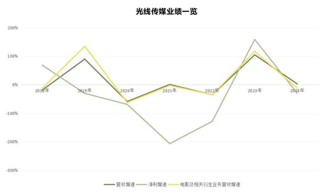 不过,业绩波动大并非光线传媒独有的烦恼,知名影视公司华谊兄弟的业绩同样并不稳定——2024年,其营收仅为4.65亿元,相当于巅峰时期2017年的11.8%,2018年首次由盈利8.28亿元转变为亏损11.69亿元后持续处于亏损状态。