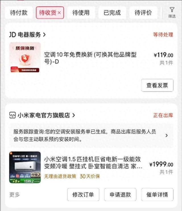 尽管各地师傅紧急驰援,仍难以完全满足东北市场的需求。不少网友反映,空调下单后配送和安装周期大幅延长。长春市民陈女士告诉海报新闻记者,她于7月10日在某电商平台购买了一台空调,但下单4天了,空调仍然没有送到家。“售后人员刚开始说得半个月后才能上门安装空调,我跟客服说家里有宝宝,希望能尽快上门送货,对方说争取在18号上门送货安装。”
