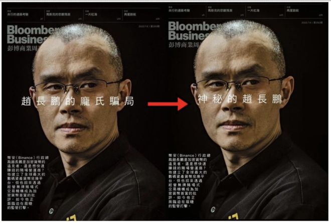 2022 年,彭博商业周刊中文版将一篇赵长鹏的封面报道标题翻译为“赵长鹏的庞氏骗局”,英文原版标题则为“Can crypto's richest man stan the cold”。赵长鹏此后发起诉讼,彭博商业周刊对外致歉,并将中文版报道标题更改为“神秘的赵长鹏”。