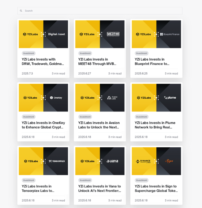 YZi Labs 目前在全球管理着超过 100 亿美元的资产,更名后会将投资范围扩展到加密货币以外的人工智能、生物科技等领域。更名之后,YZi Labs 已完成至少 9 笔对外投资,包括加密人工智能初创公司 Vana、链上代币分发平台 Sign、开源硬件钱包公司 Onekey,赵长鹏也在部分被投公司担任顾问角色。