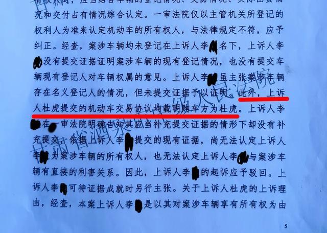 杜虎认为,商贸公司人员领取被扣车辆时所持裁定书并非生效文书,超限站没有核实清楚便将车辆让该商贸公司拖走属于失职。更何况,李某上诉时,亦明确表示车辆并未登记在其货运代理部及商贸公司名下。而二审法院查明,杜虎提交的机动车交易协议均载明购车方是杜虎。因此,杜虎认为,他才是被扣车辆的所有权人。