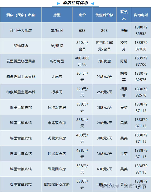 钓源古村景区:1、景区门票免费;2、住宿八折优惠。
