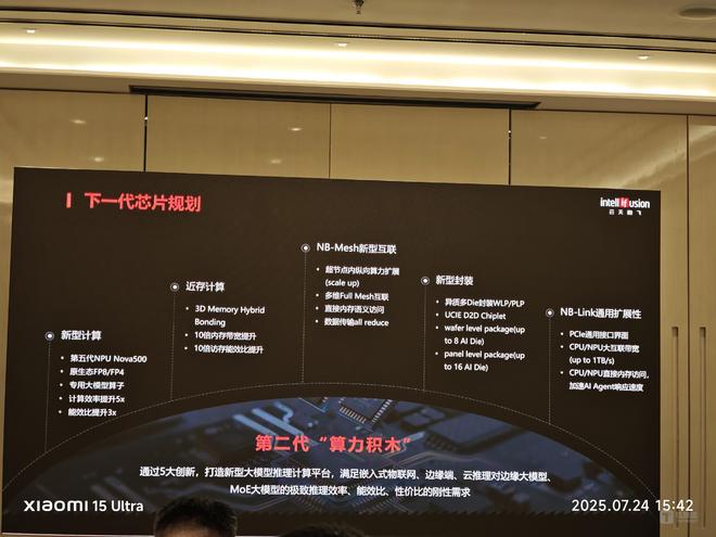 - 1、采用新型计算。第五代NPU Nova500,支持原生态FP8/FP4,专用大模型算子,计算效率提升5倍,能效比提升3倍以上。