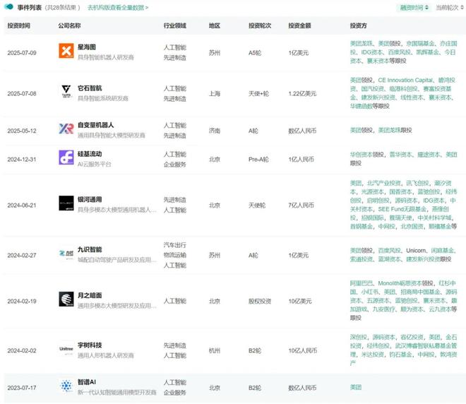 7月8日,美团战投领投具身智能公司它石智航,金额高达1.22亿美元。