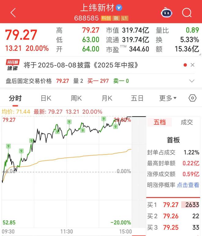 红星资本局7月28日消息,今日开盘,“大牛股”上纬新材(688585.SH)再度大涨,之后涨幅一路扩大,尾盘收获“20cm”涨停,收报79.27元/股,总市值接近320亿元。今年以来,该股累计涨幅已达到10倍以上,成为A股年内首只10倍股。