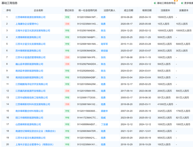 简历显示,陆勇,男,1974年生,中国国籍,无境外永久居留权,东南大学本科学历。陆勇先生现任江苏锋晖新能源发展有限公司执行董事、江苏华晖新能源有限公司董事长、江苏半步堂文化发展有限公司董事长、南京锋晖复合材料有限公司董事长等职务,现为公司实际控制人,任公司董事长、总裁职务。