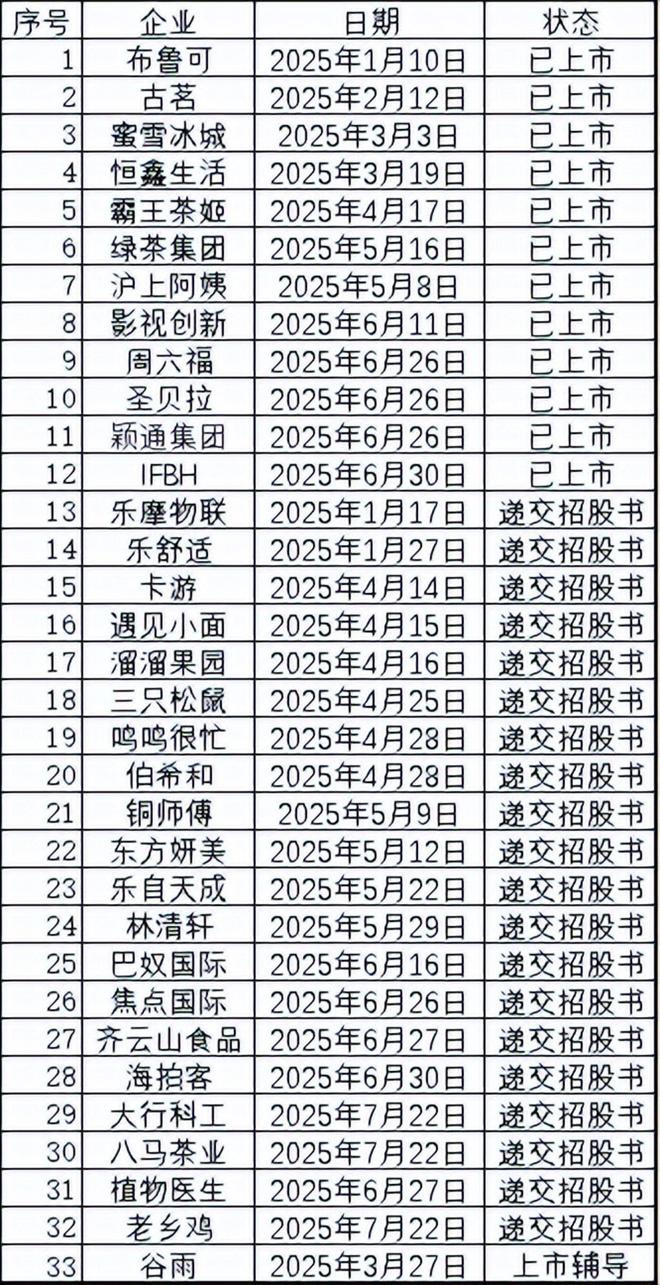 根据蓝鲨消费统计数据显示,自2025年以来,包括蜜雪冰城、古茗、影视创新等12家消费类企业已经在A股和港股成功上市,此外还有老乡鸡、大行科工、林清轩、卡游、巴奴国际等20家消费类企业正在IPO排队,抖音顶流“谷雨”等消费类企业也宣布启动IPO进程。