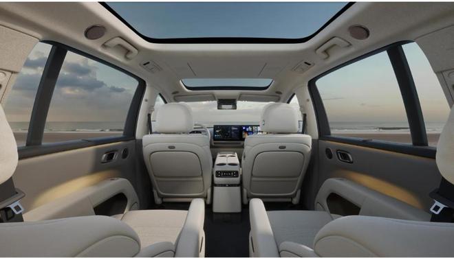 在空间设计方面,i8把确保三排六名乘客都能获得宽敞、舒适的乘坐体验放在了首要任务,为此,i8 的侧窗水切线(车窗下沿线)被刻意设计得更低、更平直,以保证第三排乘客也能拥有开阔的视野,并且,彻底放弃前备箱空间,将更多空间完全让渡给座舱内部。