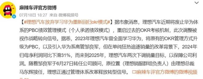 此后有媒体报道,理想汽车将会废弃此前PBC绩效管理模式,重新回归OKR模式。曾经花了大功夫学自华为的PBC模式被一朝废弃,而刚刚转为顾问的邹良军恰恰出身于华为内部的销售系统管理岗位。