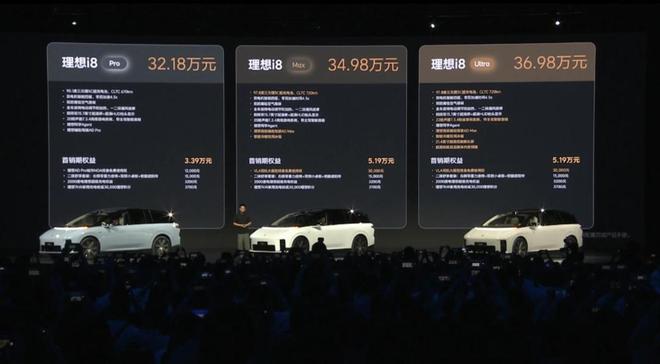 理想i8共发布Pro、Max、Ultra三个配置版本,全国统一零售价分别为32.18万元、34.98万元和36.98万元;新车将于2025年8月20日正式开启全国交付。