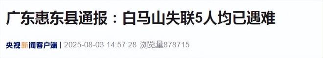 广东白马山失联的5人已全部遇难,这一消息令人痛心,此次事件造成了巨大的悲剧,给遇难者家属带来了巨大的悲痛,相关部门正在处理后续事宜,以尽可能减轻遇难者家属的痛苦,这一事件也提醒我们... 广东白马山失联的5人已全部遇难,这一消息令人痛心,此次事件造成了巨大的悲剧,给遇难者家属带来了巨大的悲痛,相关部门正在处理后续事宜,以尽可能减轻遇难者家属的痛苦,这一事件也提醒我们,安全至上,必须时刻关注人身安全,加强安全防范意识,尽可能避免类似悲剧再次发生。