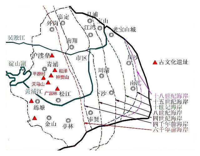 图1.上海6000年海岸线变化(来源:网络)其中下沙曾是海岸线重要的聚落之一
