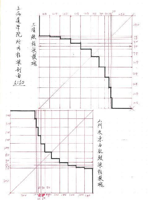 在叠涩设计的推演过程中,我发展出两套网格模块化系统:一套为875mm×875mm模块,专用于三清殿;另一套为700mm×700mm模块,应用于东西配殿及山门(参见附图)。该系统不仅精准控制立面装饰线条的出挑韵律与节奏,更贯穿建筑构件至空间单元的全尺度设计,由此形成极具识别性的线性装饰体系。