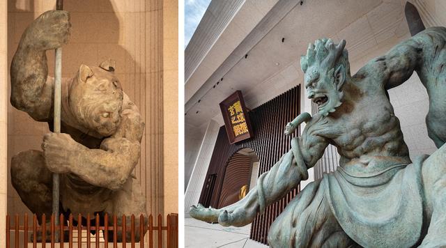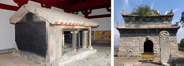 左:山东长清孝堂山汉代郭氏石祠,右:陕西合阳玄武庙明代石殿