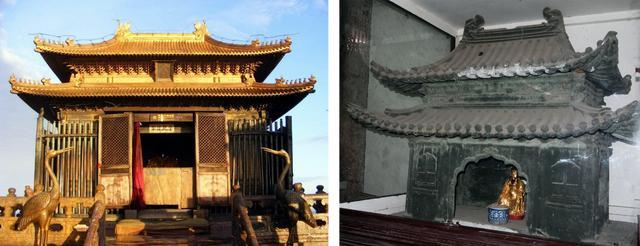 左:湖北武当山明代金殿,右:江苏苏州玄妙观明代小金殿