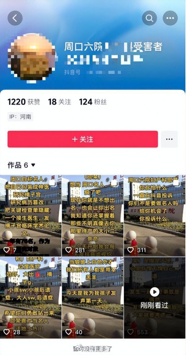 张先生表示,产妇及家属住院期间就开始在抖音上发布作品,出院后前往郑州市金水区,将产妇曾就诊过的郑州一家医院及周口六院一同告上法庭。“一个多星期前刚在合肥做完司法鉴定,结果还没出来,但专家在现场做了初步结论,说此事与妇产科无关。可家属并不罢休,持续在抖音上发布作品。”