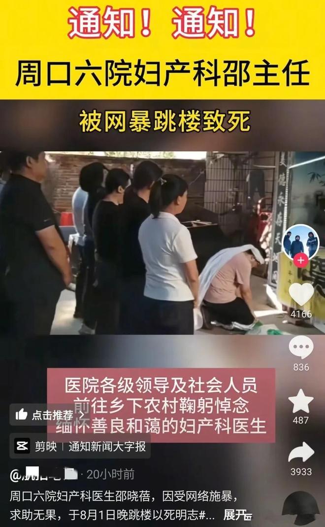 周口一妇科主任因遭网暴自杀,网暴缘于三起医疗纠纷,详情曝出