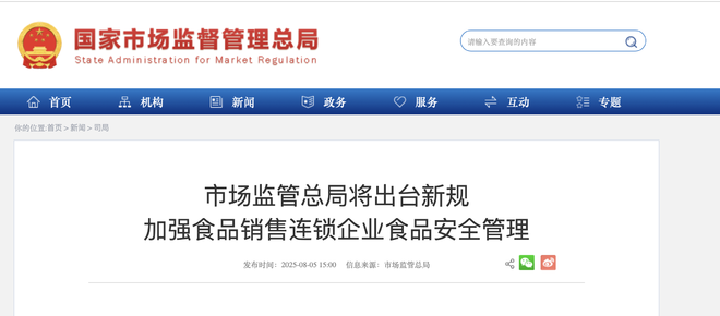 红星资本局8月5日消息,今日,据国家市场监督管理总局官网信息,为加强食品销售连锁企业食品安全监督管理,压实总部、门店等食品安全主体责任,切实防范系统性、区域性风险,保障食品安全,市场监管总局组织起草了《食品销售连锁企业落实食品安全主体责任监督管理规定(征求意见稿)》(下称《意见稿》),向社会公开征求意见。