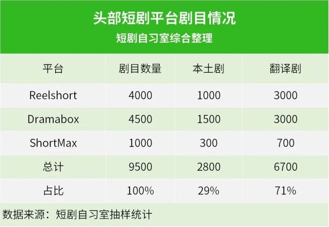 毫无疑问,短剧出海已进入加速发展期。据文娱先声观察,当下海外短剧平台达三四百家,其中主要玩家有枫叶互动(中文在线子公司)的ReelShort、点众科技的DramaBox、麦芽文化的NetShort、新阅时代的GoodShort、昆仑万维的DramaWave、掌玩网络的FlickReels和九州文化的ShortMax等。