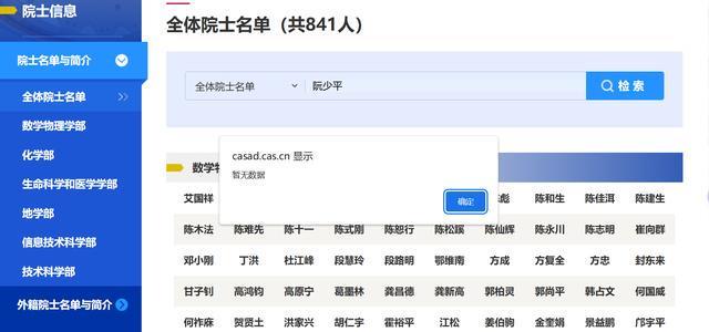 记者多次致电中科院,其对外公布的联系电话一直无人接听。之后记者登录中国科学院官网,在公布的841人院士名单中,均未检索到“阮少平”。
