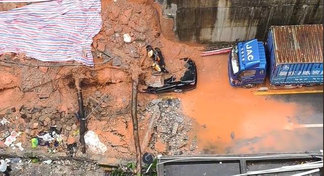 深圳一小区因暴雨,路基滑塌,多车被掩埋