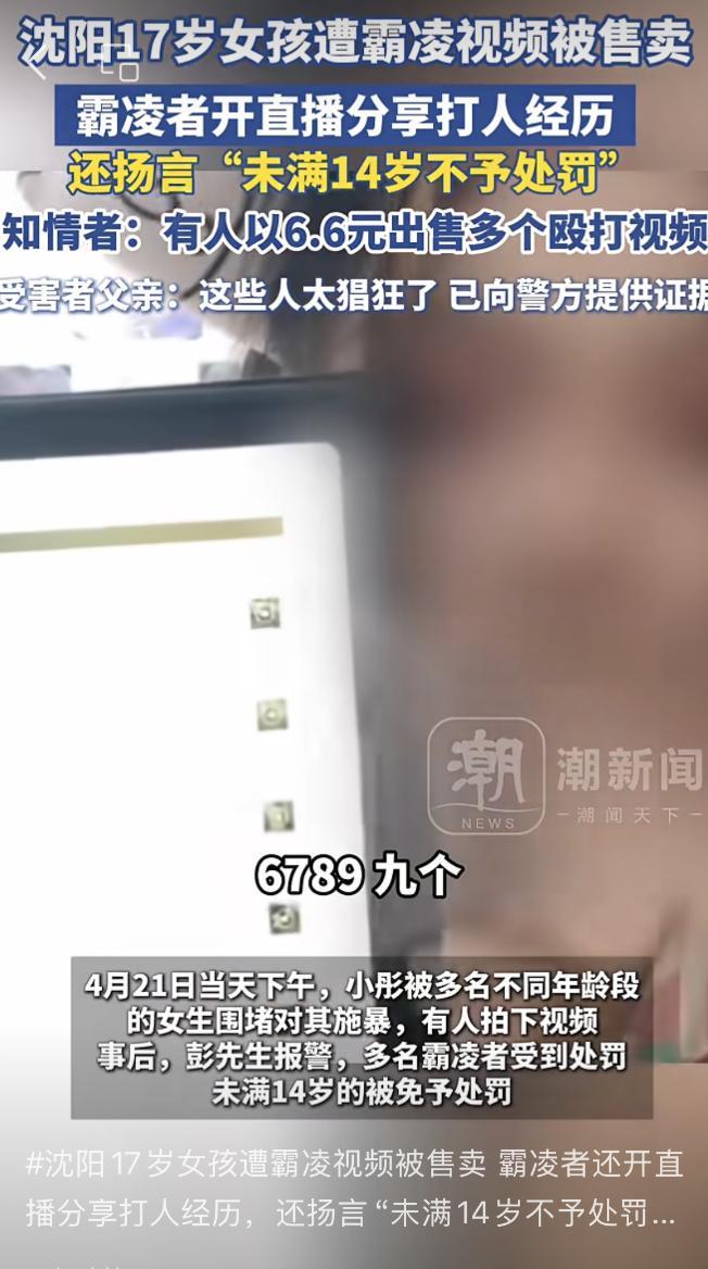本以为事情到这里能告一段落,让小彤慢慢走出阴影,可接下来发生的事,更让彭先生愤怒又无奈。没过多久,小彤的同学和家属在网上发现,竟然有人把小彤被打的现场视频拿出来卖,标价6.6元。更过分的是,那些霸凌者还开了直播,在镜头前毫无顾忌地分享打人的经过,甚至在直播里嚣张地扬言说“未满14岁不予处罚”,仿佛这是什么值得炫耀的事情。