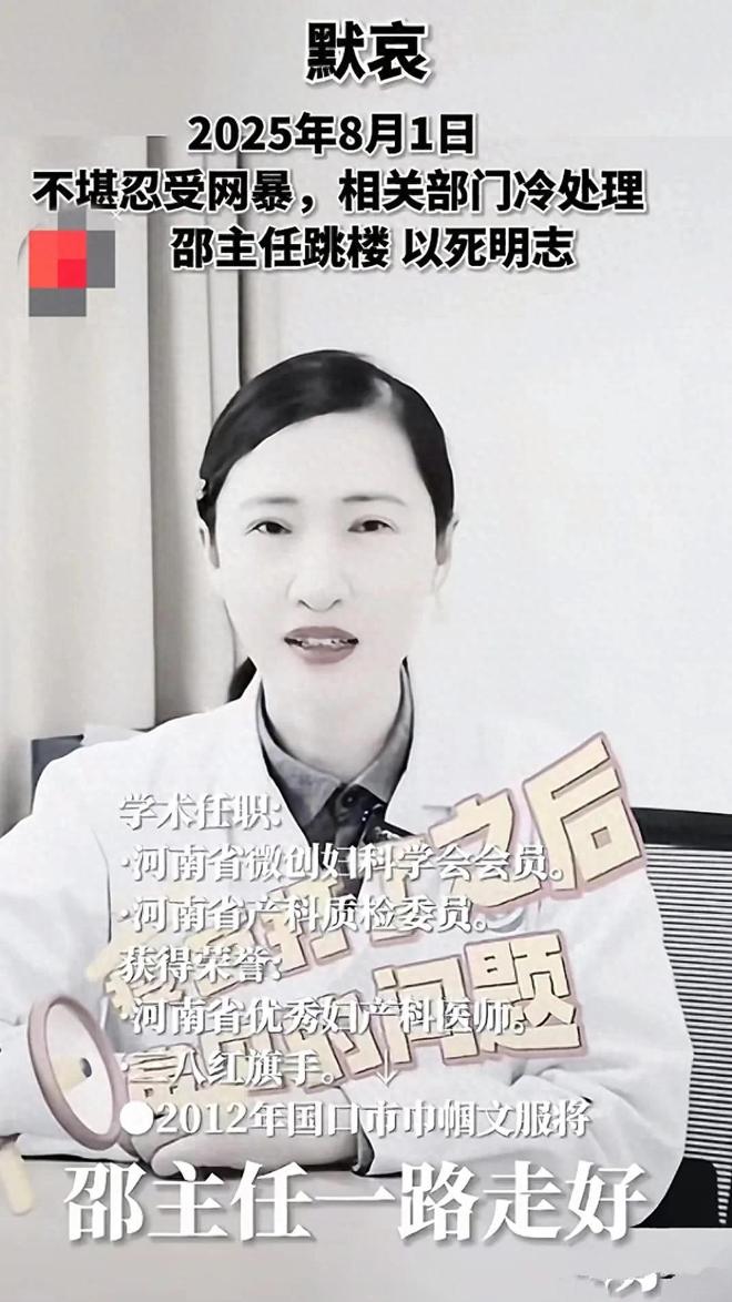 知情人还称,最终,在持续的污蔑与精神重压下,邵医生选择了从高楼跃下。她用最惨烈的方式,发出了“以死明志”的呐喊。当她的视频在网络上流传开来,那些曾被网暴言论裹挟的人才猛然惊醒——那个被骂“无良”的医生,其实是救死扶伤的功臣;那些义愤填膺转发“黑料”的手指,或许间接成了推她坠落的力量。