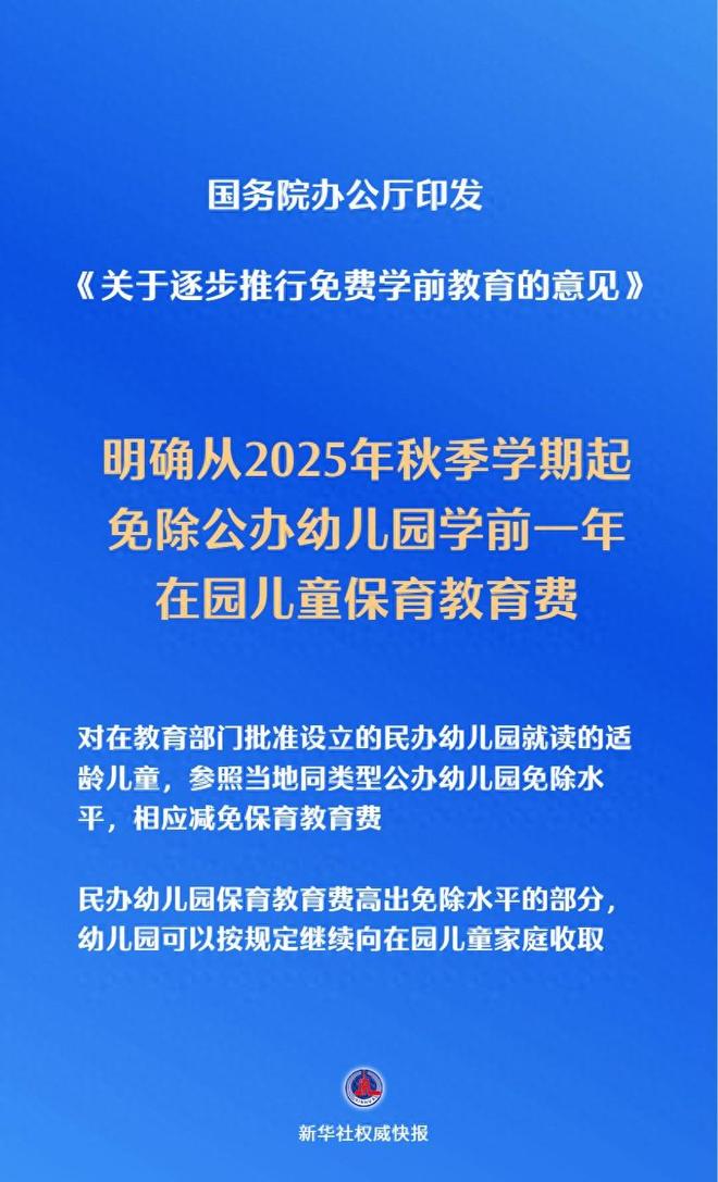 《关于逐步推行免费学前教育的意见》正式发布,引发广泛关注,该意见旨在推进学前教育公平,减轻家庭负担,提高教育质量,具体措施包括逐步推行免费学前教育,加强师资培训和幼儿园建设等,这一... 《关于逐步推行免费学前教育的意见》正式发布,引发广泛关注,该意见旨在推进学前教育公平,减轻家庭负担,提高教育质量,具体措施包括逐步推行免费学前教育,加强师资培训和幼儿园建设等,这一政策的出台,受到社会各界的热烈反响和高度评价,有望为更多孩子提供优质教育资源,促进教育公平发展。