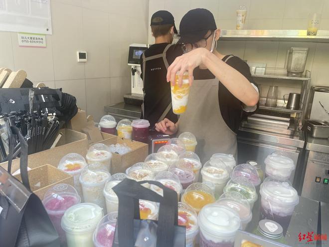 “心血来潮想喝杯奶茶,走到喜茶之后发现根本挤不进去,工作人员说前面还有200多杯!”位于深圳的老严(化名)表示,今天在线下自提奶茶,需要等待的时间比平时更久,让她直接放弃了买奶茶的打算。