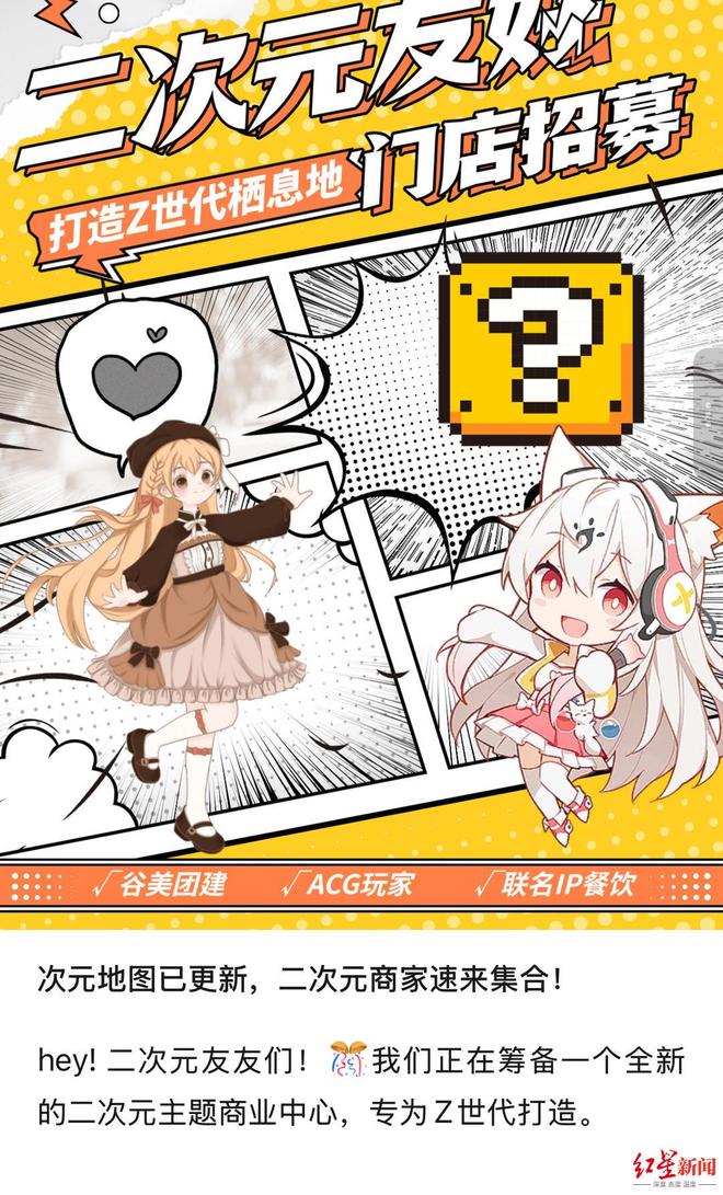 目前,该商场处于筹备和招商阶段,预计明年开业。据介绍,商场共有六层,面积超3万平方米。业态规划方面,第一、二层的业态主要为二次元主题的周边产品、联名茶饮,第三层业态主要为数码电竞手游、桌游、未来科技产品、非遗文创等。