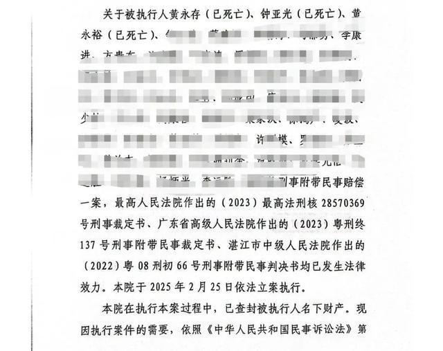被执行人黄永存、黄永裕、钟亚光已死亡