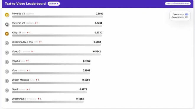 目前,视频生成模型虽尚未建立统一的评测体系,但“时序一致性”“帧画质”“提示词遵循度”“生成稳定性”等,往往成为通用测评关键词。而从多个测评榜单的变化趋势来看,各个模型之间仍存在较为明显的排名波动,领先优势尚未固化。