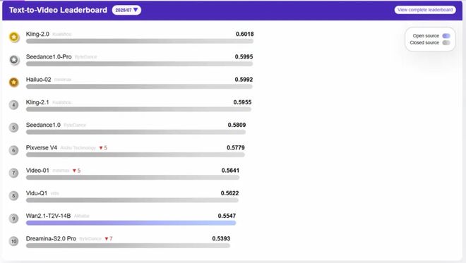 以今年4月和7月的AGI-Eval(由多所国内顶尖高校和研究机构联合发布)榜单为例,仅仅三个月时间,前十排名便发生大幅洗牌,能维持榜上位置的仅剩Pika 1.5、MiniMax的 Video-01、爱诗科技的PixVerse V4。而其他原本上榜的模型,或被自家迭代版本替代,或已被后来者赶超。