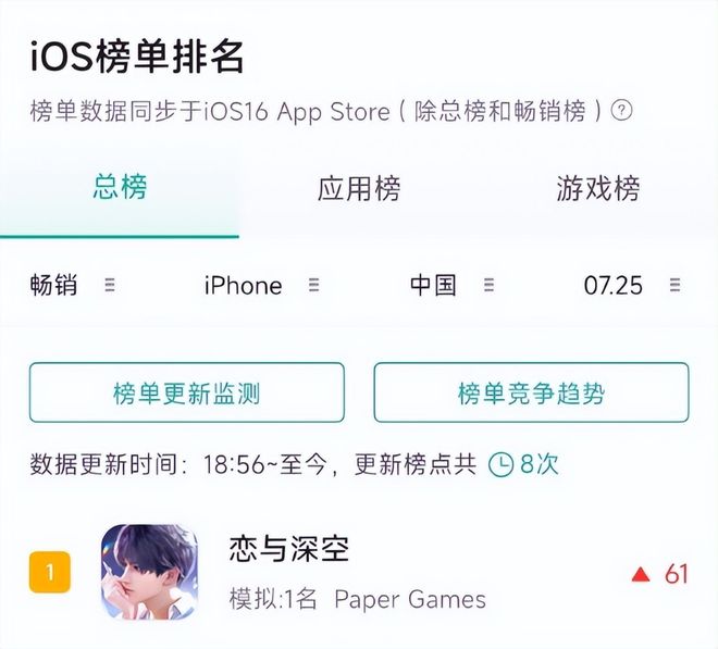 该活动助力《恋与深空》登顶国内总榜及游戏榜双榜第一,创下开服以来首次在强竞品活动期内登顶的纪录。