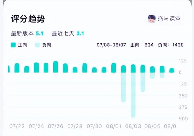目前,《恋与深空》在安卓平台的用户评分暴跌,并累计收到近4500条不推荐评价。