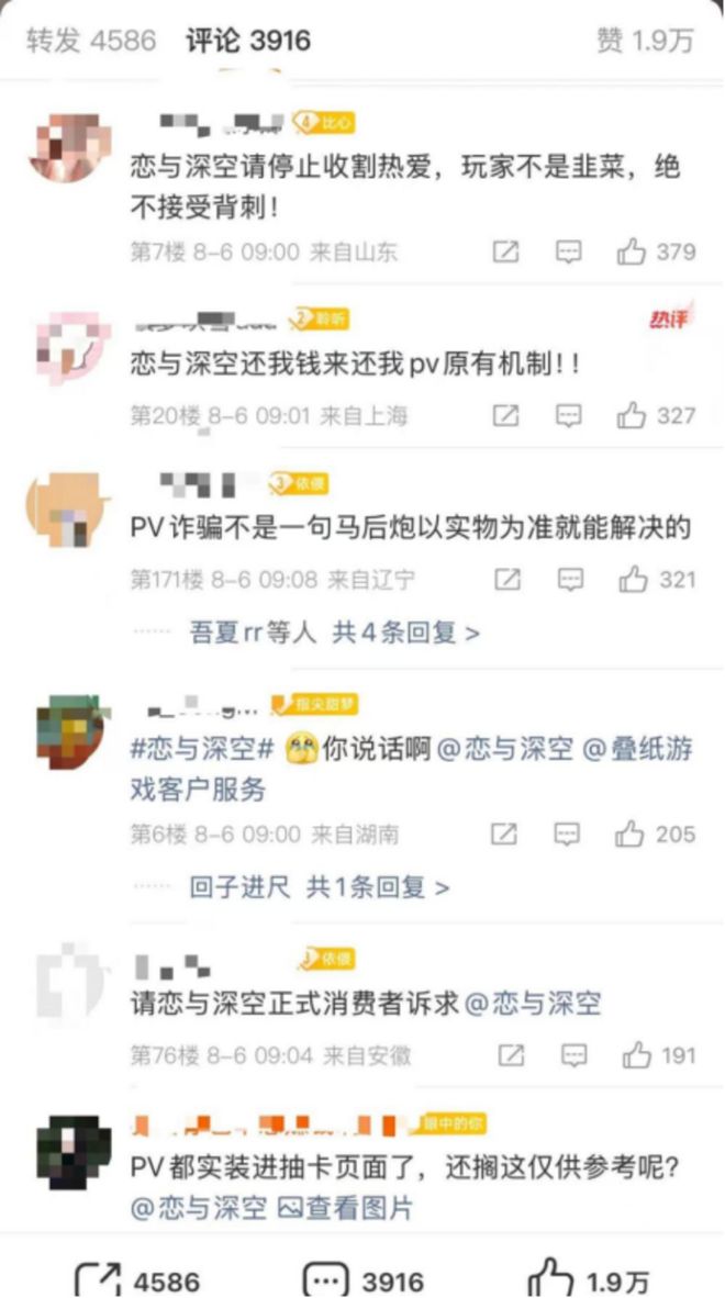 近期,叠纸旗下《恋与深空》遭到玩家集体维权漩涡,甚至还有玩家上了1818黄金眼。