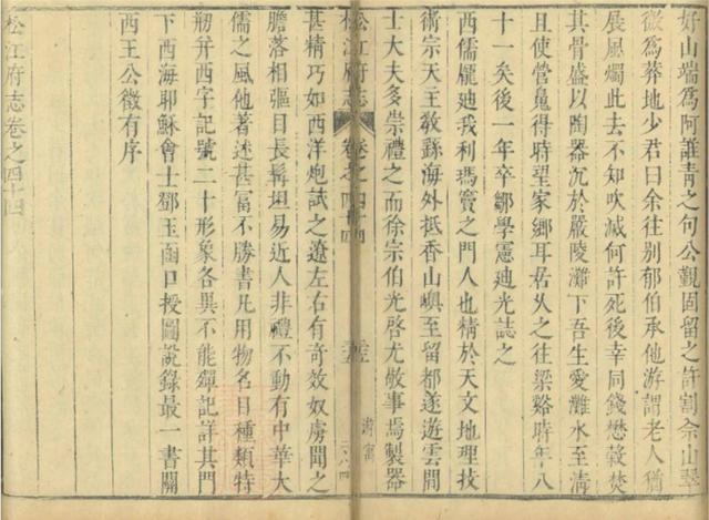 (崇祯)《松江府志》内页,感兴趣的读者可至上海历代方志展现场观看实物