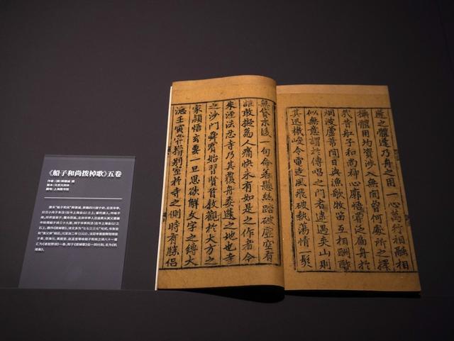 上海图书馆藏《船子和尚拨棹歌》五卷,元至元刻本。上海历代著述系列展现场展出,陈虹静雯摄