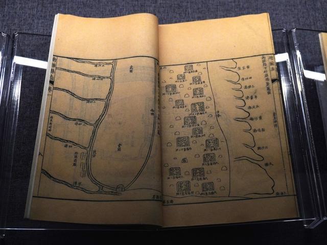 上海历代方志展现场展出位于该志卷首的《南汇县下砂盐场聚灶图》,下砂盐场各个盐灶所在位置一一标识清楚。值得一提的是,这些已经消失的盐灶如今仍以地名的形式保留下来,在浦东地区的地图中,我们仍然能够发现“三灶港”“六灶镇”“七灶村”等地名。